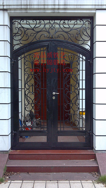 該款編號為TY-JHM13的鐵藝門是無錫鐵藝護(hù)欄廠為別墅庭院設(shè)計的一款高檔豪華的鐵藝門。該款鐵藝門材料搭配美觀合理,選材穩(wěn)定,容易鍍鋅。由常年從事鐵藝制造工作的專業(yè)技師經(jīng)手工鍛打、加熱、彎曲造型、拋光、節(jié)點特殊處理、硝基油漆等工藝制造而成。該鐵藝門美觀大方而又不失厚重感,門體上面的兩個圓及其內(nèi)部和上部裝飾物提升了大門的整體效果。其花葉和裝飾物配件都經(jīng)過精挑細(xì)選、稱得上是獨出心裁,安裝合理。可作為別墅庭院大門的首選。