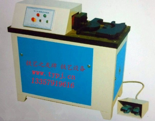 該機是一種電動液壓型材造型加工機器,它可把粗大的方鋼、圓鋼、扁鐵一次成型擠壓成各種圓、弧、角及異形形狀的金屬飾件、金屬結構件,可批量、快速、標準化生產各種鐵藝標準弧、防盜窗件、樓梯件、圍欄陽臺弧形立柱及鐵藝家俱造形件。生產效率及裝飾件的一致性極高、是鐵藝、裝飾裝璜、家俱行業、市政圓林業、建筑業的理想設備。隨機配套4種模具(折角模具1套、拱園校直模具1套、成型模具2套)。